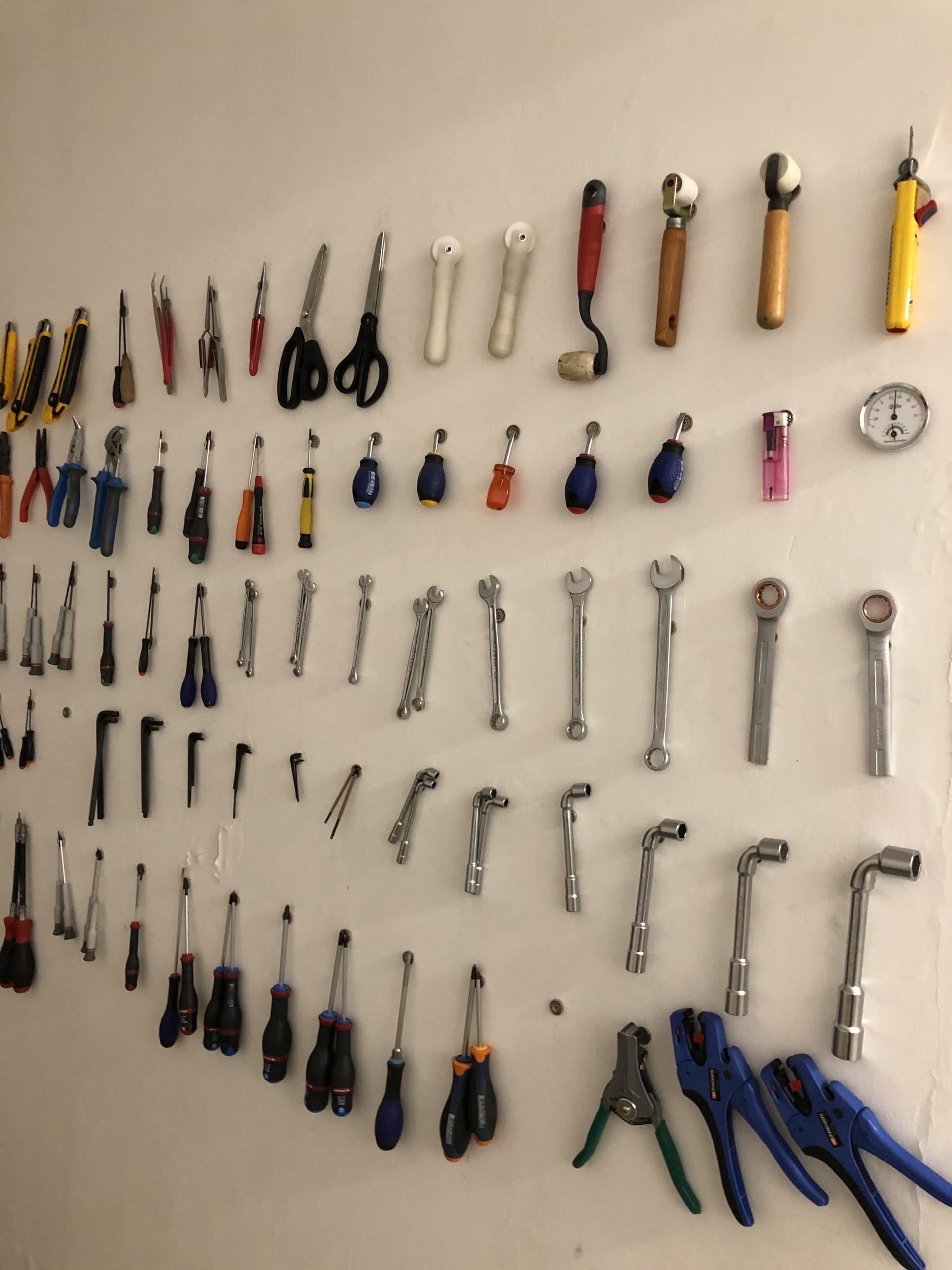 We then take a tour around the workshop. All of Ozone’s lighting pieces are designed and made by hand in Paris and assembled in their intimate workshop (the metal pieces are manufactured in nearby metal workshops). Metal framework for a new design just arrived and I watched them open up the packages to see the design for the first time. Large, round metal circles of varying sizes appeared one after another. This is part of a chandelier design they created for a private residence in France. As it is for a private client, no photos were allowed but I did see the drawing and was awed by another creative way of showcasing light in a way I had never seen before. Etienne’s two colleagues started assembling the metal pieces and preparing them for the LED panels. I saw them but was sworn to secrecy as their lighting configuration was top secret (not that I could spill any secrets anyway, as it was beyond my comprehension). To me that is the magic of seeing this process. The end result is so beautiful that one forgets that there is masterful technology and extremely sophisticated engineering behind the creation. All of the electrical parts and tools are organized perfectly around the workshop and one can see that these magicians take great pride in their work.