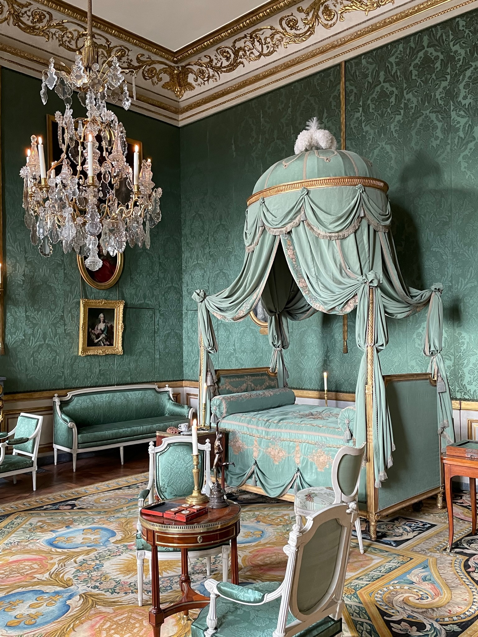I then entered the dining room and the audio guide gave a fascinating story about the table. The first Intendant moved in around 1775 and he created a “flying” (elevating) table in this dining room. The table was equipped with a mechanism that lowered it to the floor below where the servants could set and clear the table without having to enter the room and perhaps be privy to a private conversation. This was such a novelty that not even Versailles had anything like it. I also read that the reconstructed table setting is based on a painting that I had recently loved seeing at the Musée Condé at Château de Chantilly near Paris, “Dining on Oysters”, 1735 by Jean-François de Troy. They even included a basket on the floor with oyster shells tumbling out. This dining room really offers a glimpse into a space that feels like a party just took place reflecting the joie de vivre of the period.